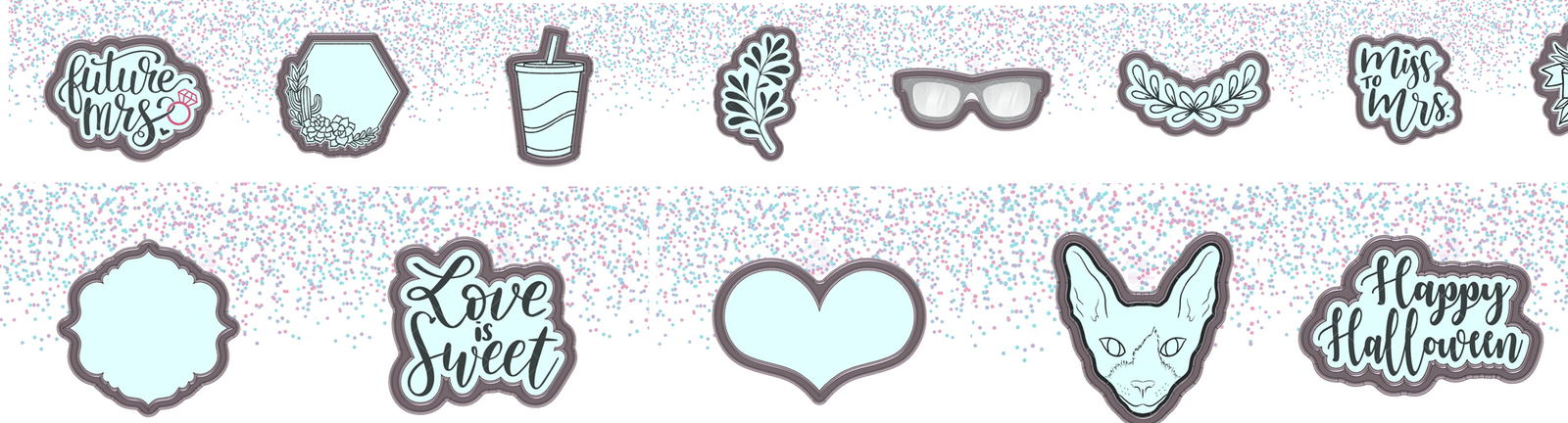 All physical cutters are 3D printed to order from PLA with labels (name & size), rounded handles, & a thinner cutting edge. Please note that 3D printed cookie cutters MUST BE HANDWASHED in cool or lukewarm water. These cutters will warp when exposed to heat.